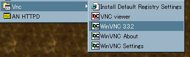 インストールしてスタートメニュー,プログラム,VNC を選ぶと,下の図のような表示になります.